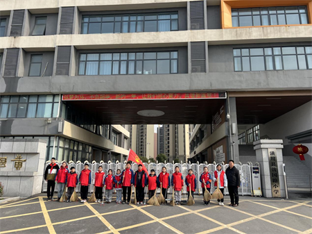 下午,实践活动如期开展。学校组织大队委成员高举队旗,携带扫帚、长柄夹等卫生工具,走出校园,开展环境卫生整治实践活动。队员们分工协作、干劲十足,重点对校园周边道路、社区角落的垃圾、杂物进行全面清理,用双手美化环境,用行动践行雷锋精神。
