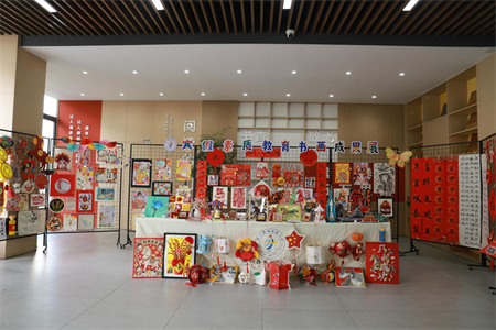 书画手工作品展区里,绘画、剪纸、灯笼等作品创意十足,一笔一画、一剪一贴尽显童心巧思;